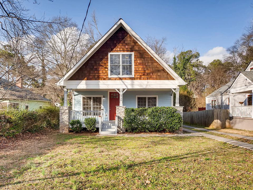 Charming craftsman features a Master on Main and Master on the second floor with a sitting area & whirlpool tub. You'll love coming home to this natural light-filled living room with a stacked stone fireplace. Inviting front porch, back deck, and the level yard is perfect for the homeowner who loves to garden and entertain. The home boasts an existing 2 car garage with second floor ready to be a home office, additional storage, or hobby room. You'll enjoy living close to all that the City of Decatur has to offer without the taxes. Zoned for Drew in Toomer ES.