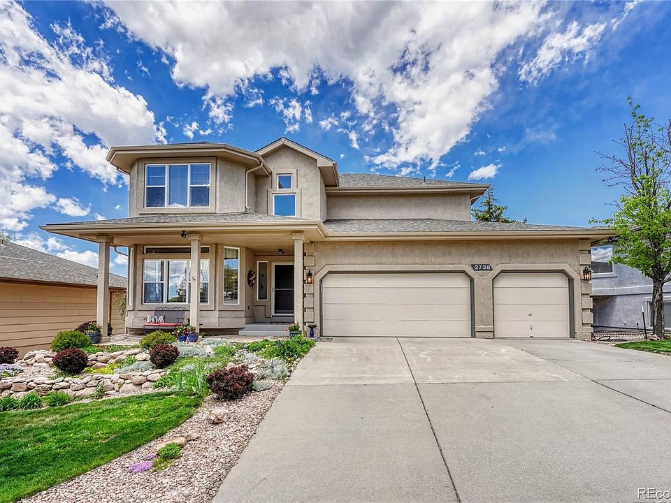Everything you'll love about 2738 Kittyhawk Road, in the charming neighborhood of Creekside, starts at the street with curb appeal and more! From the moment you enter this home, the light, the warmth, the special touches all draw you in. Inside, you'll be amazed by the comfortably sized living spaces and abundant storage. Outside, you'll fall in love with the views & the neighborhood. Convenience to all Colorado Springs has to offer is just a bonus! This home has been lovingly maintained & upgraded. The stainless steel appliances are new and are included. Kitchen features a gourmet island & breakfast bar with granite countertops; the prep space has gorgeous butcherblock countertops and a built in coffee nook. Enjoy your morning and the views from the breakfast nook. Evenings can be spent out on the deck stargazing or catch the holiday fireworks from Flying Horse. The main level living spaces are filled with natural light and special touches like the warm wood floors, gas fireplace with gorgeous surround and vaulted ceilings. Downstairs, enjoy a game of pool or step out into the yard to enjoy the views. There is ample space downstairs to create a home fitness center or a home office or just a quiet getaway. Also of note: new carpet, new furnace, new water heater and exterior paint. The impact resistant roof was installed in 2015. Be sure to check out the 3d Walkthrough tour linked in the listing!