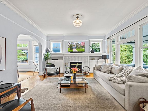 Stunning Foursquare in the heart of Irvington! Welcoming entryway, living room w/fireplace, expansive dining room for entertaining, renovated kitchen w/quartz, Viking appliances & access to backyard deck. This home offers both contemporary comforts & period details providing a grand sense of space. Hardwood throughout. Upstairs bath w/heated tile flrs.Finished lower level w/sep entrance offers ADU potential. Outdoor sprinklers, high-end turf backyard,detached garage & lg private drieway.Grant HS [Home Energy Score = 1. HES Report at https://rpt.greenbuildingregistry.com/hes/OR10201345]