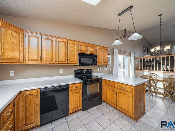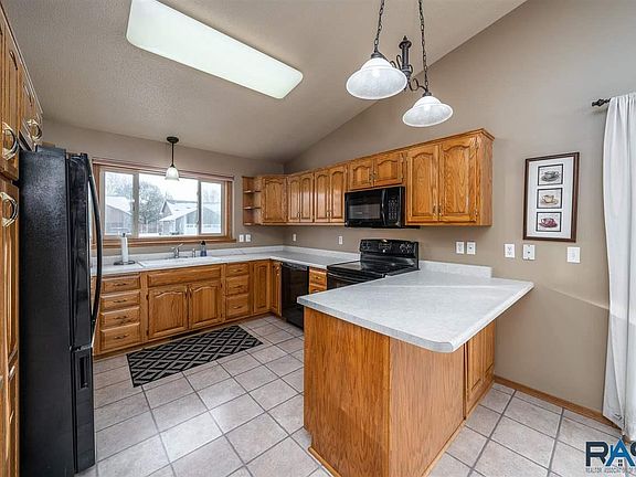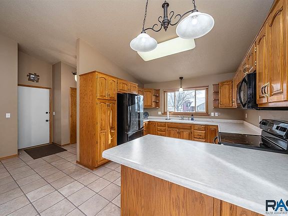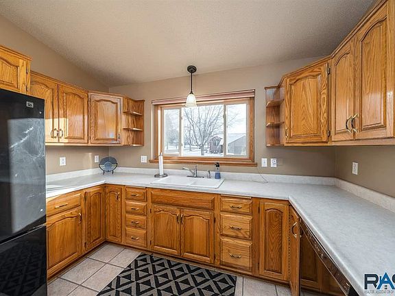 Fantastic 3 Bed, 2 Bath Walkout Multilevel Home in Beautifully Maturing Rustic Hills in Southeast Sioux Falls! This home is completely move-in ready and rests on a nice corner lot with fully fenced backyard. This wide open multilevel floor plan is great for entertaining with open railing to the upper level and soaring vaulted ceilings. Kitchen is generously sized and features black appliances, ample cabinets and countertop space, breakfast bar, and a full depth pantry cabinet next to the refrigerator. Huge living room overlooks the kitchen and dining areas. Just off the living room you will find 2 bedrooms both with walk-in closets and the master with a pass through to the full bath. Walkout lower level houses a large family room with walk-in storage closet and 3rd bedroom also with walk-in closet and private bath with beautifully updated tile walk-in shower. Great storage offered in the unfinished 4th level. Large backyard with coated chain link fence, patio, and sprinkler system.