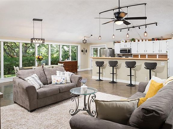 Welcome Home to Peace and Tranquility with your very own 3.7 acres, featuring gorgeous sunsets every night, overlooking the Little Blue River. This lovely unique home features 3 Bedrooms 2 Baths that has been fully updated to meet even the pickiest of buyers. Be wowed by the kitchen with Custom Butcherblock countertops, farmhouse sink, and modern finishes. Glass galore to let all that light into the interior overlooking nothing but woods and sunshine. Custom Concrete floors throughout that show off the uniqueness and make for easy maintenance. Stunning Archways throughout this home, along with high arched ceilings add to the custom architecture throughout. Spare bedroom includes a loft for play or storage! Surrounded by nature, enjoy the great outdoors by the fire pit, entertaining guests on the patio, spending time in the sunroom overlooking woods or even working on your green thumb in the garden. Blue Springs Schools and all amenities needed all within minutes of the property. This home won't last so make an appointment today!