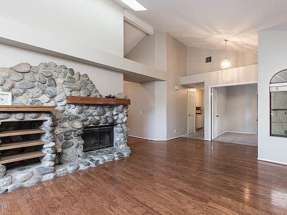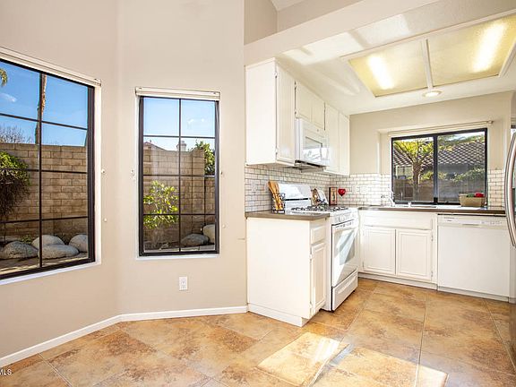 Rarely on the market, this gem of a home rests in the highly sought-after Fairway Homes community, a semi-private, quiet neighborhood on the east end of Simi Valley. Airy, bright and smartly designed, this single-story home features beautifully defined spaces including a living room with fireplace, mantel and built-in entertainment shelving accentuated by river rock, wood floors and high ceilings; a large, formal dining room with built-in storage and an updated kitchen featuring loads of cabinets, a pantry and breakfast nook... each room offering views of the backyard from every window. Down the hall, you'll enjoy a huge master bedroom ensuite with vaulted ceilings, two generously sized closets, double sinks and large shower in the bathroom. You'll love the neutral paint and flooring, ample windows and skylights for natural lighting, recessed lighting, central heating & air conditioning, indoor laundry, two car attached garage. You'll appreciate the convenience of the community pool and spa just steps away and the close proximity to some of the City's best parks, schools, golf course, dining, grocery stores & transportation. Sweet, stylish and move-in ready... make an offer today!