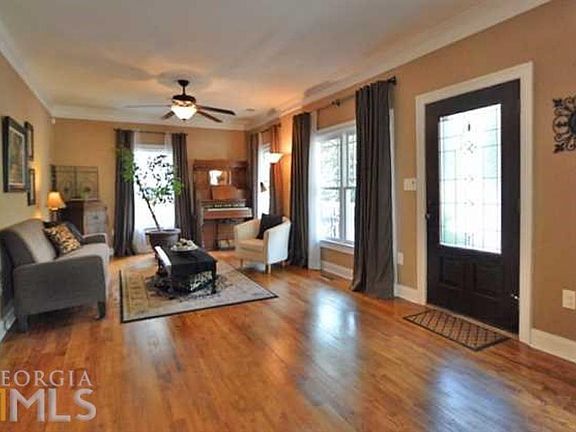 Very large home on one of East Lake's best streets. Exterior just painted, interior completely redone in 2008, spectacular double staircase. Separate living room, dining room, open kitchen to 2 story great room. Trey ceilings in bedrooms, crown mouldings. 3 walk-in closets, tons of storage. Third floor offers additional expansion opportunity. Deck, firepit and storage building in fenced backyard. Drew Charter School district and convenient to Oakhurst, Decatur, Publix and interstates.