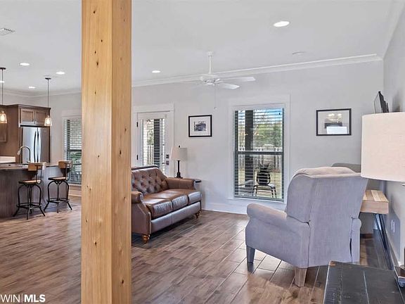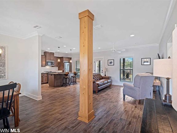 This better than new beauty is ready for a new owner! Only 2 years old and loaded with upgrades, this professionally designed, custom home is sure to make you fall head over heels. This attractive home sits on one of the larger lots in the neighborhood, offering a spacious back yard and features 2 breezy porches. When you enter the home, you will quickly see that no detail has been spared. Features include 9 ft. ceilings w/large crown molding throughout, stylish wood look tile for easy maintenance, exquisite granite & quartz countertops, beautiful custom cabinets and custom built in china cabinet/pantry, modern designer lighting, and loads of recessed lighting. The roomy, open living space gives you plenty of room for entertaining while still offering privacy with a split bedroom floor plan. The generous master suite with 2 walk-in closets featuring built-in shelving, bonus oversized storage/linen closet, separate water closet with window, separate custom vanities with quartz counters and a luxurious tiled shower, is the perfect retreat after a long day. The large laundry/utility room is conveniently located next to the master suite and features built in shelving and a junction box that is pre-wired for internet and cable to keep your space efficient and clutter free. This home comes complete with all appliances including a washer and dryer â all of which were purchased for the home- and a rainbird irrigation system. If thatâs not enough to make you fall in love, itâs also bronze fortified to help you save on insurance costs! Seriously, what more could you ask for? Make your appointment today to see this stylish home before its gone!