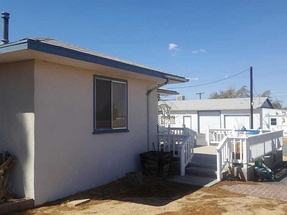 2 Cute Homes and large work shop on main street Boron. Front house is 2 bed, 2 bath, built in 1951 with large front yard and cute front and back porches. Spacious kitchen was remodeled and it has island and dining area, lots of cabinetry with easy glide shelves and lazy susan, built in microwave, stainless steel stove. Living room is large with wood stove; master bedroom has large closet and private half bath. Large Landry room is off kitchen and door leads to back yard and work shop. Back house is 1 bed 1 bath home with galley kitchen, dining room, living room, full bathroom, car port and storage area. Workshop Is as large as the house and has 2 roll up doors, 2 work area, and a half bathroom. There is lots area for parking and RV gates for easy access from street.