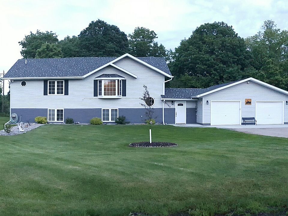 Classy split entry 5 BR, 2.75 Bath w spacious Bedroom and closets. Master bedroom features walk in closet and en suite. Open vaulted K/L/D rooms with beautiful laminate wood floors, french doors off dining walk into sun room which opens to huge deck facing east for beautiful sunrise views overlooking Bass Brook. Fully finished walk out basement. Wooded back yard privacy offers a country feel in close proximity to town. Over sized attached insulated garage, all located on the end of a quiet cul-de-sac in a family friendly neighborhood. New roof and blown in insulation (2016). Compliant septic.