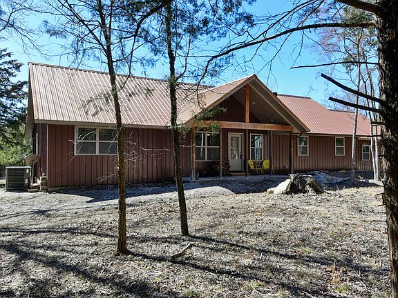 Nestled on 41.9 private acres at Table Rock Lake, this stunning cabin-style home offers the perfect blend of nature and modern comfort. While the home itself is tucked within the trees without a direct lake view, the property boasts 188 feet of lakefront, giving the new owner the opportunity to create their own unique waterfront experience. A private drive extends a quarter-mile from the county road, ensuring unmatched privacy and a true immersion in nature. Underground electric lines preserve the breathtaking views of three wet-weather creeks and two picturesque waterfalls, all surrounded by mature timber. Hiking and riding trails wind through the property, offering endless opportunities to explore. The beautifully crafted, one-level home--just seven years new--boasts a stone-accented wood-burning fireplace, vaulted ceilings, and rich pine details throughout, including accent walls, doors, and trim. The kitchen boasts granite countertops, a spacious island, and a large pantry, while the primary suite features a jetted tub and a walk-in shower. This home is wired inside and ready for a house generator, offering peace of mind for any season. A private well and septic system ensure self-sufficiency in this serene setting. The covered front porch with a vaulted ceiling and the expansive covered back deck invite you to soak in the tranquility. For outdoor enthusiasts, the 60x40 metal outbuilding with concrete floors, gray-water sink setup, and electric-ready setup, along with two 12-foot doors, provides ample space for RVs, boats, jet skis, and more. A convenient two-car attached garage adds to the home's functionality, making this secluded retreat the ultimate private paradise. Boat slip available for purchase from 3rd party.
