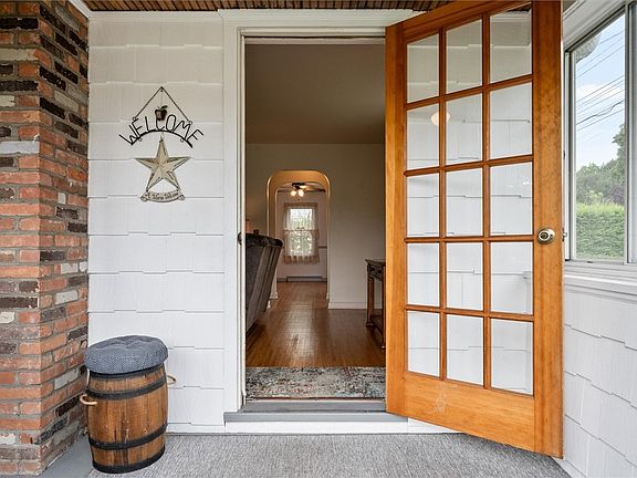 Welcome to this beautiful 1400sqft+ colonial in Chili, situated on an almost one-acre lot. This gorgeous vinyl sided home is in turnkey condition with three bedrooms and 1.5 bathrooms. Come into the home through the enclosed porch and enter into the spacious living room, boasting original hardwood floors and a pellet stove perfect for heating the living area in the colder months. Small bonus room with sliding glass doors conveniently has a powder room within it, and also leads directly out onto the large deck perfect for relaxing and/or entertaining. Kitchen features newer vinyl flooring, great-condition maple cabinetry, and a brand new tiled backsplash. ALL appliances included! Breakfast bar perfect for meals or entertaining splits the kitchen and formal dining room, leaving an open feel. Three ample sized bedrooms located upstairs along with full-bathroom that has tons of storage space within. Full walk-up attic great for extra storage. Updated vinyl windows throughout. Newer 2016 H.E. furnace. Large deck in rear of home overlooking the almost one-acre lot provides gorgeous views of property. Open House Sat 8/12 12pm-2pm. Delayed Negotiations til Monday 8/14 @ 4pm