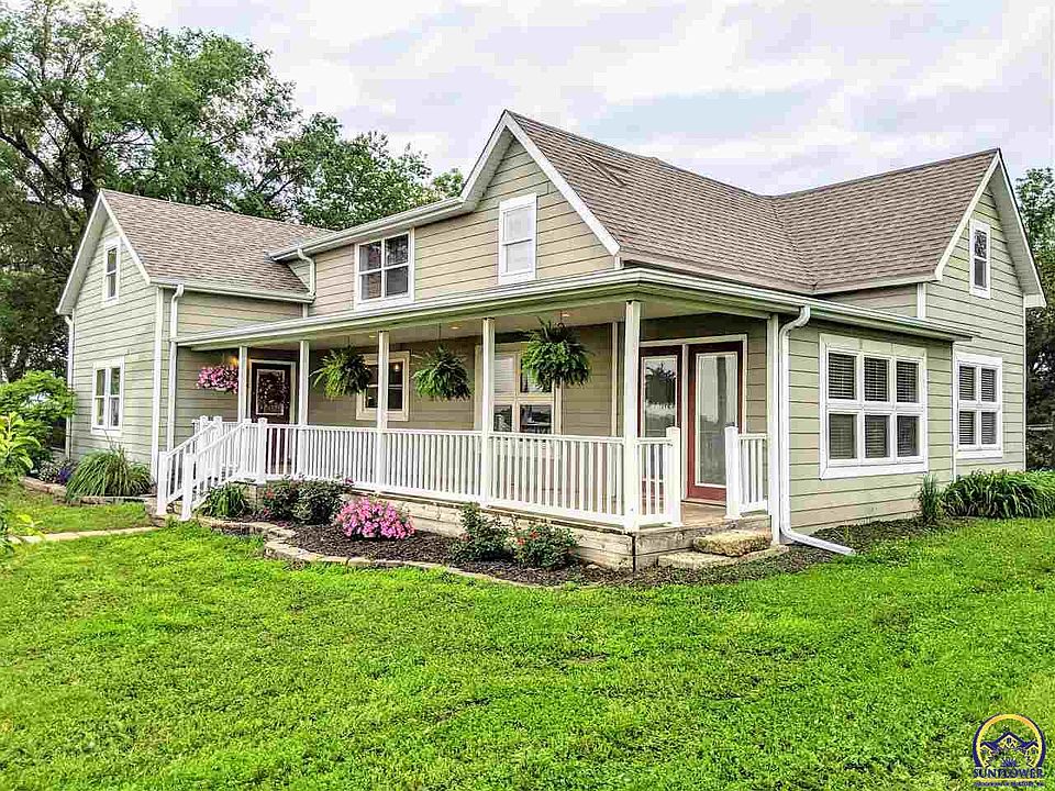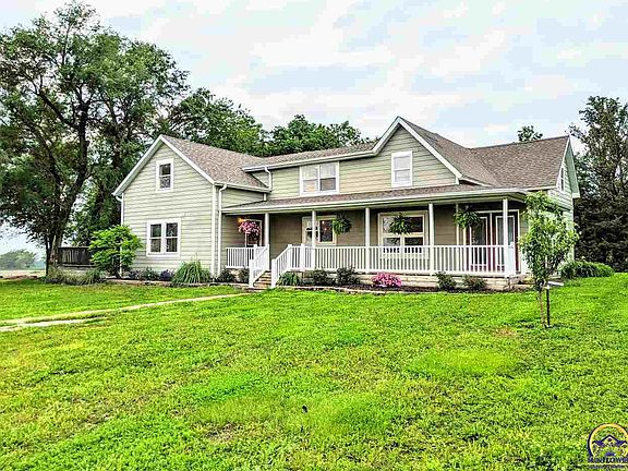 CHARMING FARMHOUSE PLUS A RENTAL!! Nestled in the peaceful rolling hills of NE Kansas, this home looks like it came right out of Better Homes and Gardens magazine! The outdoors seems to come inside with so many beautiful windows and doors. Sun-lit spacious rooms, gorgeous farmhouse finishes, and a large welcoming porch are just a few of the much sought after features of this home. Income potential in the lovely 2 bdrm rental hidden inside the metal outbuilding!