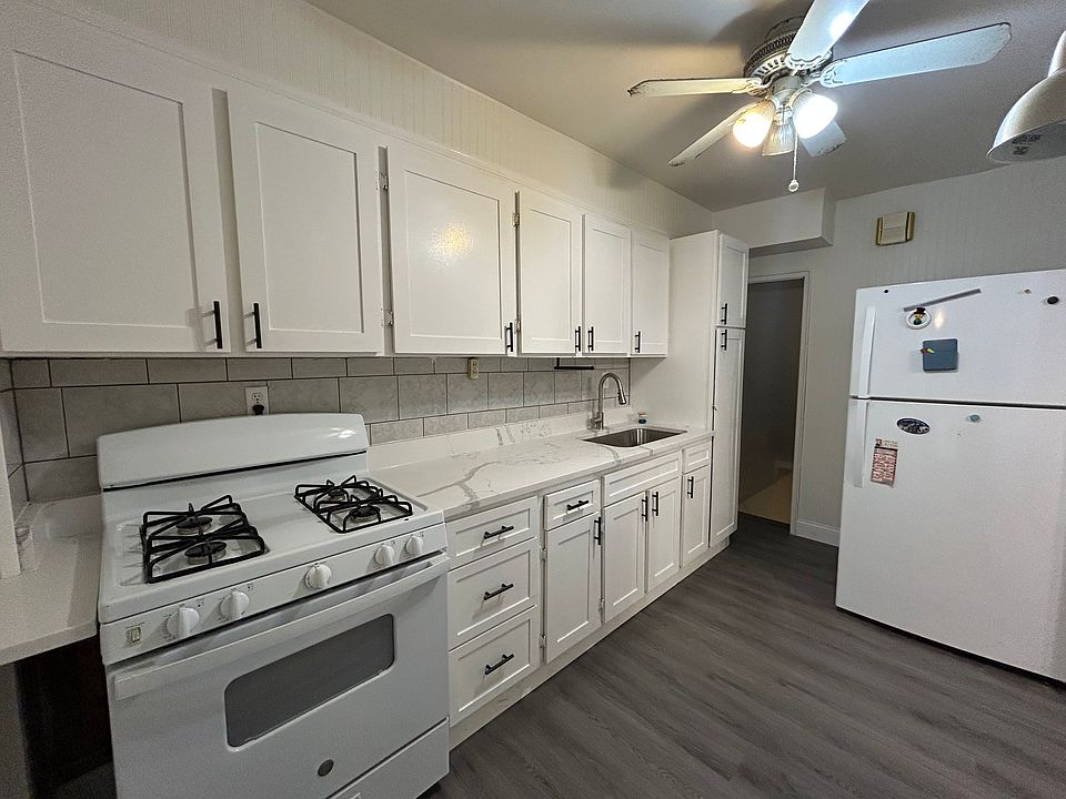 Finished basementCompletely renovated kitchenCentral air and heatFresh paintFenced-in backyardTwo bright sunroomsBrand-new lvp flooring