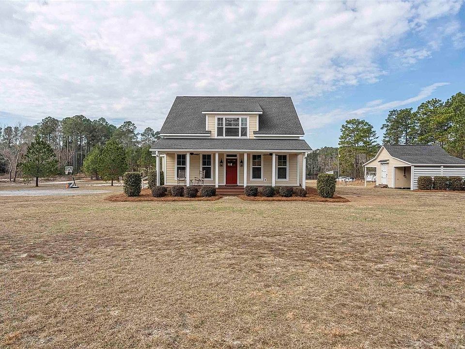 Experience the perfect blend of convenience and country living in this stunning 5-bedroom, 3-bathroom custom-built home, nestled on over 2.5 acres in the award-winning Lexington School District One. Designed with comfort and functionality in mind, this home boasts an open floor plan, perfect for entertaining and everyday living. The spacious kitchen is a chef’s dream, featuring a large island, ample counter space, and an eat-in area that flows seamlessly into the living and dining spaces. The primary suite is conveniently located on the main floor, offering privacy and relaxation, while four additional bedrooms upstairs provide plenty of space for family or guests. Enjoy breathtaking views of the neighboring farm and pond from the huge covered front and back porches, perfect for sipping coffee in the morning or unwinding in the evening. A workshop with covered parking areas adds even more functionality to this exceptional property. If you're looking for the peace and tranquility of country living with the convenience of being just minutes from shopping, dining, and top-rated schools, this home is the perfect fit. Don't miss this rare opportunity—schedule your private tour today! Disclaimer: CMLS has not reviewed and, therefore, does not endorse vendors who may appear in listings.