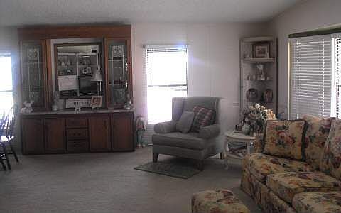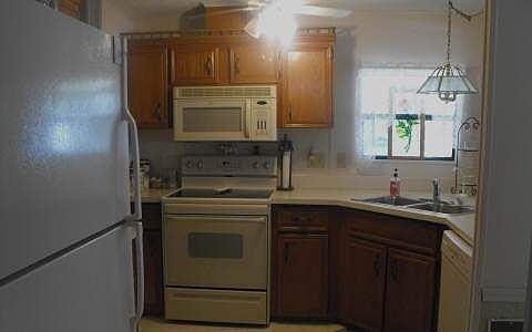 2/2, Mobile on corner lot. Friendly dog, but notify tenant to put dog up. Gated Community with golf and all the amenities. House has vaulted ceilings. Kitchen Chandler & diningroom fan match. House with all the up-grades. Lots of built-ins & Intercom system, H2o softener.