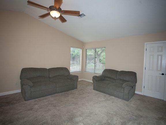 Cute, clean and freshly painted 3 bedroom 2 bath located in a quiet court location amongst well manicured homes. This charmer has plenty of upgrades including a fully finished garage that has been sheetrocked, carpeted, with recessed lighting. It is also heated and air conditioned adding an additional 420 square feet making the livable square footage nearly 1600 square feet. There are ceiling fans in every room with oil rubbed bronze fixtures and tile throughout. This home has central heating and air conditioning with a 2 car garage and large landscaped private fenced backyard. Washer, Dryer, and refrigerator will be provided. There is also a built in coded security alarm system. We are looking for someone who has GOOD references and a Good credit history and a non smoker.