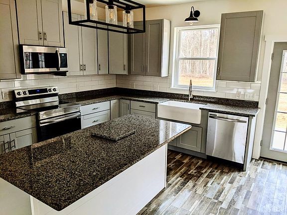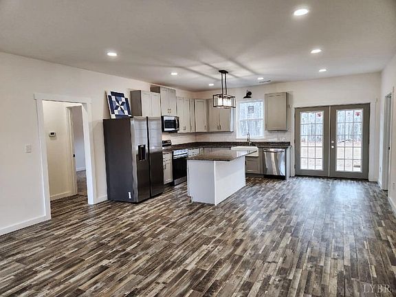 Great location between Appomattox and Lynchburg. Beautiful farmhouse sink, granite countertops, and spacious 42 cabinets. Single story with tall 9 foot ceilings, vinyl plank flooring, and carpeted bedrooms. WiFi enabled convection oven and all stainless appliances. This home has a large mudroom with washer and dryer connections and is filled with cabinets, a utility sink, and an entrance door off the driveway. Master suite has 36 doors and a walk-in closet. Huge open attic for storage. Back concrete patio perfect sitting and grilling. Level lot with plenty of room to play or garden. Firefly Fiber Optic available. 15 Minutes to Appomattox Kroger and Walmart 12 minutes to Candlers Mountain Exit.