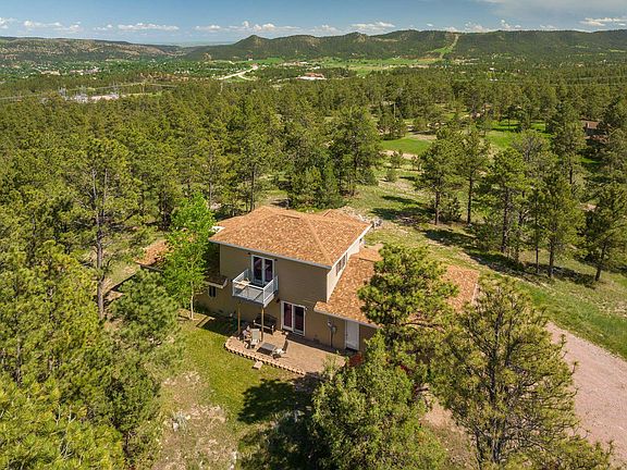 Amazing Views! Are you seeking a secluded/wooded haven but still wish to be within minutes from town? Come take a look at this 2487 sf home that is nestled in the trees with long distance views. This custom build home was designed for easy living and constructed with (SIPS) Structural Insulated Panels, Maintenance Free Siding, Energy efficient Pella Windows, All Electric with a Soap Stone Wood Stove for additional heat source. You will be stunned by the Architecture of the spacious light filled open concept living room that offers soaring vaulted ceiling and a wall of windows to enjoy the views all year round. Kitchen designed with custom cabinets and large island with seating. Enter the dining room through an archway off the kitchen. Dining room boasts windows on three sides for a unique dining experience. Primary Suite includes spacious bathroom with tiled walk-in shower, oversized walk-in closet and private access to patio. Guest/2nd bedroom features a separate entrance and private patio so guests can come and go without coming through the home if they wish. Guest/2nd bathroom features garden tub/shower with tile accents. The upper level bedroom is a 560 sf space that is currently utilized as a library/office/den with pool table. Private Deck. Use as a bedroom/family room/etc. Oversized 2 vehicle attached garage with access to mudroom area with washer/dryer/laundry sink. Listed with Cathy Mosset, Heartland Real Estate, 605-890-1066.