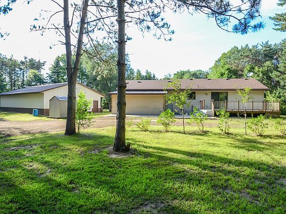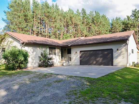 A fantastic rare find! Nestled in the trees is a Rambler with classy decor, open floor plan completely, finished with many extras. HUGE main floor Owners suite with sitting and office area. Large deck over looking private yard. 3 car detach garage /shop heated, cooled, etc. Property is also set up for a hot tub. All this on a private 2.5 acres! Must see to appreciate all this property has to offer! Quick closing available!, Directions Hwy 169 to W. on 373rd Ave to W on 128th Ave to stop sign and take right.