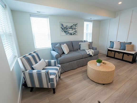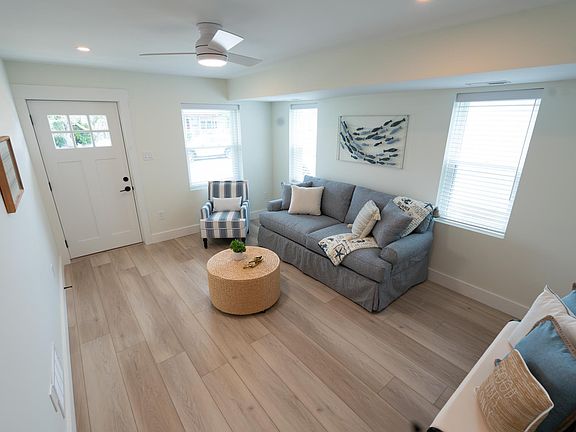 Just a block from the beach, this recently renovated first-floor 3 bedroom, 2 bath condo is a coastal oasis awaiting your arrival. Step onto the charming front porch and immerse yourself in the relaxed seaside ambiance. The living room welcomes you with an inviting board and batten accent wall and a cozy bench area, perfect for relaxation. Two spacious bedrooms at the front of the home provide ample space for guests or family members. The kitchen is a chef's delight with brand new cabinetry, a stylish backsplash, pristine white quartz countertops, new stainless steel appliances, and coastal-inspired lighting. Its seamless flow into the dining area and family room creates an ideal setting for gatherings and entertaining. The family room features a convenient bar unit cabinet with wine/beverage cooler and has a second entrance, enhancing both functionality and accessibility. The primary bedroom boasts a private en suite bathroom and two generously sized closets with custom cabinetry, offering plenty of storage. Additionally, this condo includes an outdoor shower for rinsing off after a day at the beach, a dedicated storage unit, and off-street parking for added convenience. Professionally decorated, the condo is elegantly furnished with every detail considered. All furnishings and appliances are included, making it move-in ready for you to begin enjoying the coastal lifestyle immediately. The location is wonderful, not only is it a block to the beach, but very close to pickleball and tennis courts, miniature golf, shopping and restaurants. PENDING CONDO CONVERSION "CONDO CONVERSION ALREADY IN PROGRESS AND WILL BE COMPLETED PRIOR TO CLOSING. SHARED INSURANCES & MAINTENANCE BETWEEN THE 2 UNITS