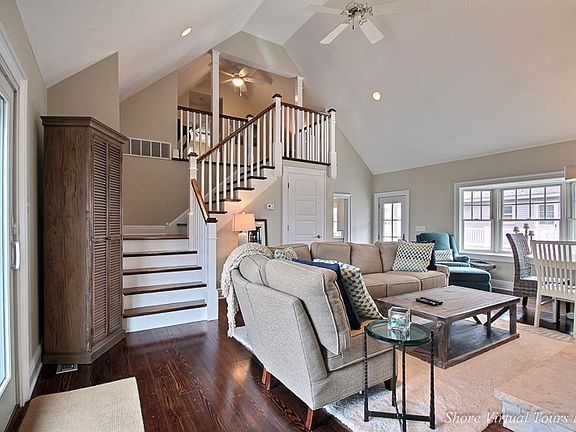This 5 bedroom 2.5 bath home has been completely renovated inside and out in 2013 including all ductwork, wiring and some plumbing. Located in the quiet part of town and a block and half to the beautiful The gourmet kitchen has stainless steel Jen Air appliances, granite countertops, beautiful tiled backsplash and self-closing cabinet drawers and doors. The living room boasts vaulted ceilings, a recessed flat screen TV above the custom built fireplace that spans from floor to ceiling. Off of the LR you will find a Trex deck that is partially covered with an outdoor Flat screen TV, refrigerator, bar area, dining table with chairs and comfortable seating. All the bedrooms including the master are on the first floor except for 1 that consists of 2 double beds. Off of the kitchen in the front of the home is another family room with a flat screen TV. In the Living room there is a 2.1 stereo system with 6.5" in wall speakers and dual 8" in wall subwoofers. Remote equipment location in closet with radio frequency Universal remote control. Outside on the side deck there is a pair of dual voice coil all weather in ceiling speakers with outside weather proof volume control and a 46" Sunbrite weather proof TV controlled by a weather resistant radio frequency universal remote. The yard has been professionally landscaped with an irrigation and sprinkler system. In the back yard you will find a lovely outside shower and a custom built storage shed. There is a hardwired sump pump in the crawlspace that is on a switch. This home was offered as a rental home in 2015 for a total of 11 weeks and brought $29,700 in rental income.