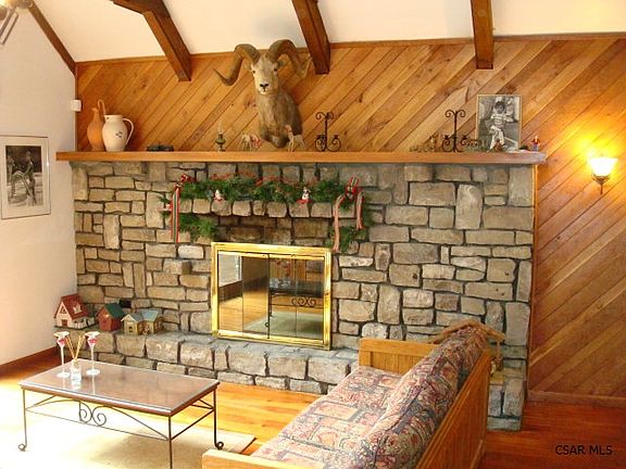 Beautiful four-season chalet located in the Alpine Heights community, set on just over an acre of land. Positioned directly across from the North Lot entrance, this exceptional property offers far more space and functionality than its exterior suggests. The home features vaulted ceilings and a top-level primary suite complete with a full bath and an impressive shower that provides scenic yet private views.