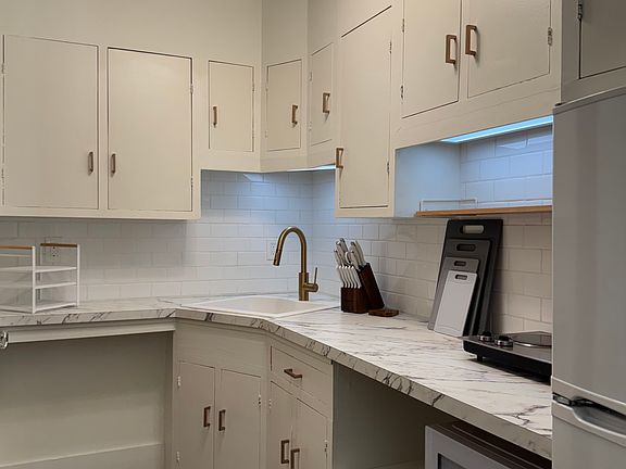 - Bathroom, kitchenette, walk-in closet, and additional storage