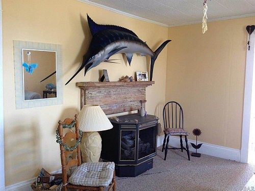 View website: http://274bayviewdrive.agentmarketing.com - 1950s Vintage Tastefully Updated for Comfortable Living Today. Newer Tin Roof, Well-Painted and Maintained Siding, New 8x8 Piling Foundation. Newer Tilt-Clean Windows and Entry Door. Newer Carpeting. Lovely Glass-Pane Interior Doors. Central Heating & Air Conditioning. Tile Flooring at Entry, Wood Laminate Flooring, Beadboard Wainscoting, Lovely Old Mantelpiece and Free-Standing Gas (Propane) Fireplace in Front Parlor (Living Room). Gathering Room (Family Room & Kitchen) with Sliding Glass Door to Large Sundeck, Bay Window Dining Nook, Wood Laminate Flooring, Beadboard Wainscoting, Faux Copper Back-Splash, Ample Cabinetry, Newer Appliances. Versatile Carpeted Game Room, Office or Play Room with Beadboard Wainscoting and Built-In Cabinetry. Two Bedrooms with Newer Carpeting, Full Bath In-Between. Pull-Down Stair to Attic. Utility Room at Back with Laundry Appliances and Water Heater Is Large Enough to Accommodate a Second Bath with a Little Re-Arranging. Stumpy Point Bay/Pamlico Sound Views, Canal View and Access to Bay.