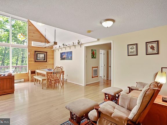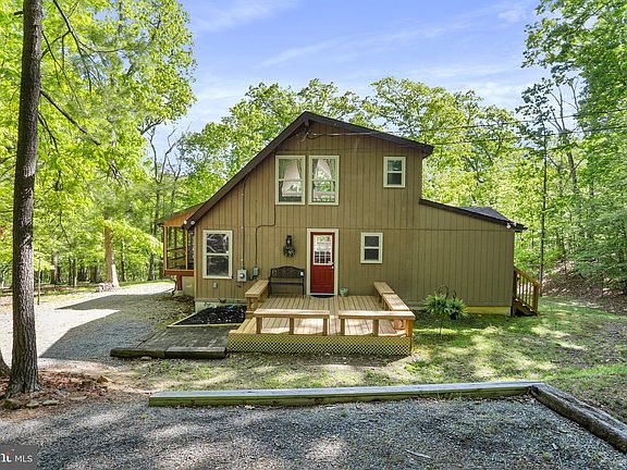 Enchanted Elmwood/Chalet on stunning wooded 1.96 acre lot with lots of privacy and many incredible features! Natural light filled interior with cathedral ceilings, window wall of glass with remote control window shades and an open floor plan. 10×16 screened in porch off of the great room to enjoy the outdoors with friends and family. Well maintained home with welcoming entrance deck. Beautiful knotty pine walls & ceilings and gorgeous hardwood floors in most rooms. Living/dining room has cathedral ceilings, fixed window wall of glass, wood burning fireplace with insert, brick surround/hearth, 2 LG Inverter heating/cooling mini split units and slider to the relaxing 10×16 screened in porch and large wrap around deck with sun sail removable canopy. Separate kitchen has sloped ceiling, wood cabinets, under cabinet lighting, corner double stainless sink, wood pantry, refrigerator, stove and built in microwave to convey. Two bedrooms and full bath complete this level. Loft bedroom has walk in closet with custom shelving and attached full bath. Wood stairs to lower level with six paneled knotty pine doors throughout, knotty pine ceilings and wood looking ceramic tile flooring. Family room has slider to concrete patio and you can enjoy a game of horseshoes in the back yard. Owners bedroom with gorgeous attached bath. Owners bath has two vessel sinks, decorative mirrors, wood open double vanity with ceramic tile accents, sliding wood door to additional closet, large tub with ceramic tile and wood surround. LG Inverter heating/cooling unit in bedroom. (2) additional storage closets and large utility room with work bench, storage and side by side washer/dryer with basin tub. A must see home! There is not a transferable membership The Woods Club facilities. Therefore, the purchaser of this property will not be able to join the club. Spa, Clubhouse Grille and 2 golf courses are open to public. This well maintained property will not be on the market long! Selling furnished, turn key. If you dream of escaping to a restful place this is it.