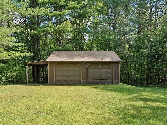 Exposed beams and an abundance of natural light welcome you in this three bedroom, two bath, open-concept home situated on 20 acres with river frontage! Beautiful, level yard with attached two-car garage, a full, dry basement and air exchange system. An additional detached two car garage/workshop adds extra storage space- currently used to store boats and lawn equipment. Multiple heat sources include heat pumps, baseboard heat, a woodstove, (lots of stacked wood in the basement) and a whole-house generator to provide peace of mind. Owner previously kept an ATV trail to the river for duck hunting. High quality Anderson windows and a newer roof.