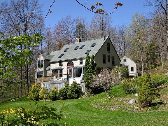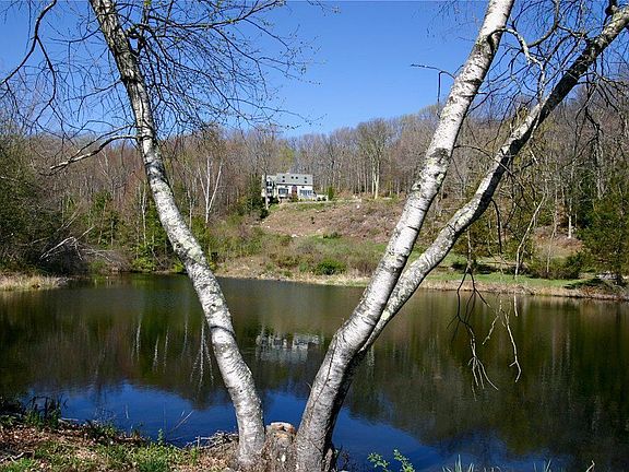 5BR main residence, post&beam craftsman, 2 FPl, 9 skylights, 3-story atrium, raised wood deck, extensive gardens,9.61 acres, outstanding views! Chefs Kit w/slate counters, Sub0, butcher block island, SS appliances. 2BR Guest house; 2-story barn; 1/2acre bass-stocked pond!