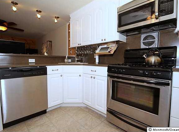 A commuters dream! NOT Age-restricted!Located around the block from Hazlet Train Station, this 2 bedr, 1 bath home has been completely remodeled and sheetrocked! The kitchen is amazing w/newer SS appliances/nat gas cooking, dec lights/fans, brkfst bar & more. The living room comes with the 50 inch Plasma TV already mounted and ready to use! There's a large bathroom with W/D and linen closet, 2 bedrooms w/good storage, newer windows, shed, patio. No dogs allowed in development. Hurry to See!