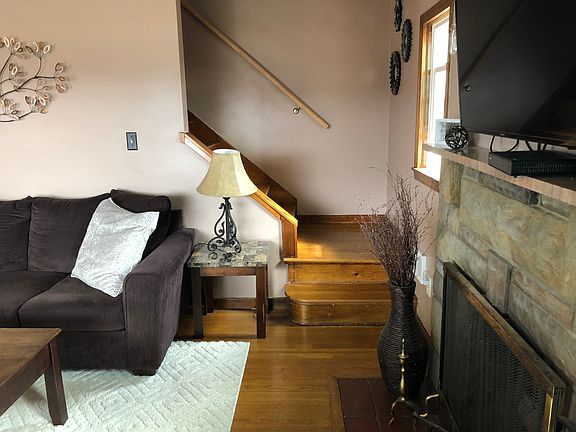 Super brick home, move in ready, all you need to do is unpack! 3 Br, 1 bath, LR, DR, Kitchen w new counter and faucet. Updated lighting and HW floors throughout. Cozy fireplace in Lr. Upstairs huge open space is combination bedroom, tv area, and toy room. Great storage, extra toilet in basement. New retaining wall, fenced back yard, great views from front porch