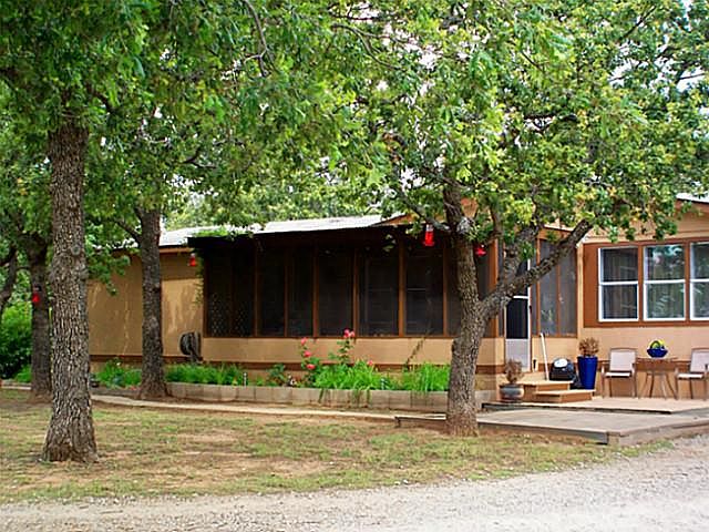 ...Quiet country living close to town with Young County views and lots of privacy with 6.27 acres. Well maintained, clean and move in ready 3 bedroom 2.5 bath manufactured double-wide home with many recent upgrades including laminated flooring. Open floorplan has a spacious living room with fireplace, country kitchen with custom cabinets, formal dining room, large master bedroom with walk in closet and nice sized master bath with garden tub and separate shower, super sized childs bedroom, exceptional utility room and abundant storage throughout. Comfortable large screened in front porch with views of the beautiful wooded acreage with mature oak trees and a pond. Fenced back yard with raised wooden deck. Three outbuildings, 220 electric hook-up for RV or welder, critter pen fenced and gated with a few billy goats that prune trees, and vegetation. Great place to raise a family. Come see soon!