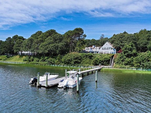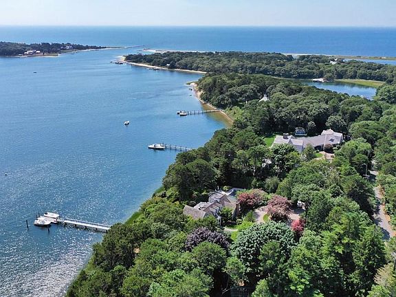 Elegant waterfront estate located in the private gated enclave of Oyster Harbors. Beautifully designed and custom built, this five-bedroom residence offers a refined lifestyle in a tranquil setting with an inground pool, private deep-water dock and spectacular water views. With 5,000 square feet of living space the interior includes a front to back living room, formal dining room, a spacious gourmet kitchen, family room, two home offices with custom built-ins and a fabulous sunroom overlooking the beautifully landscaped yard and West Bay. The second floor features the master suite with private balcony overlooking the water and four additional bedrooms. This home lends itself to peaceful family living or large-scale entertaining and is perfectly sited on a private and elevated 1.42-acre parcel highlighted by custom mature landscaping and a three-car detached garage with living space above ideal for extended family or guests. A special opportunity for the discerning buyer. Information he