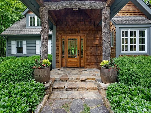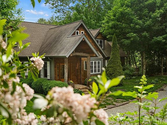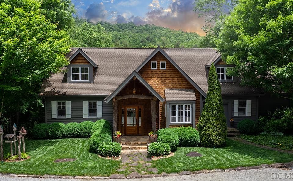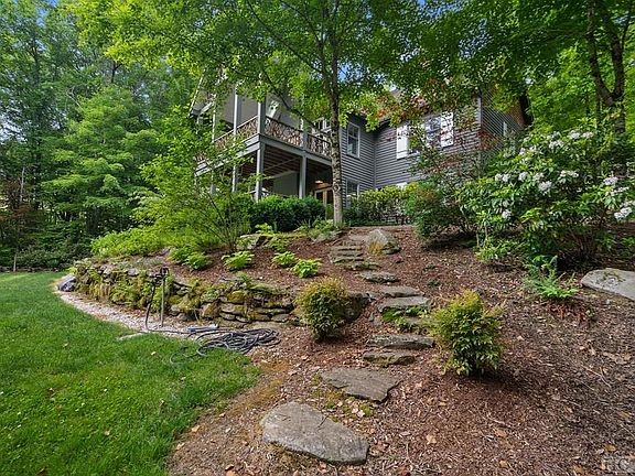 Tucked away down a quiet tree lined driveway, this home is surrounded by an abundance of native flora and fauna, providing a secluded setting with ample privacy yet is located only minutes to Lake Glenville and approximately 10 minutes to downtown Cashiers. You'll quickly notice the grounds have been meticulously maintained and landscaped to enhance Mother Nature's beauty with 175 yards of large boulder terracing throughout, two separate backyard lawn areas for outdoor fun, and a gentle creek running along the north side of the property. There is plenty of parking and the backyard can easily accommodate 50 guests comfortably for social gatherings plus features a separate lighted area with water and electricity for an RV. The home itself pleasantly mixes traditional with rustic design using accents of wood and stone coupled with the high ceilings and generous amounts of natural lighting. The owner's suite is located on the main level of the home with convenient access to a private open deck, the living area, the laundry/mud room and into the kitchen. The kitchen is spacious and well appointed with a six burner gas stove, great counter space and a breakfast bar that flows into the dining area and on into the living area which is centered with a beautiful fireplace with access to the back deck with a second fireplace. Also located on the main level, you'll find a guest powder room and an en suite guest bedroom. The upper level includes two additional guest bedrooms, a shared bathroom, and loft area. The lower level is a blank canvas with amazing potential for expanded living space if needed or additional storage space if not. Be sure to take the 3D tour to get a better feel for the home and its layout!