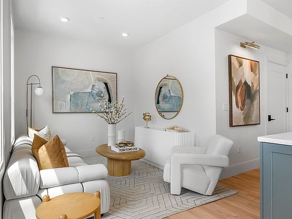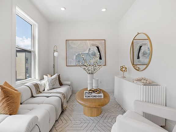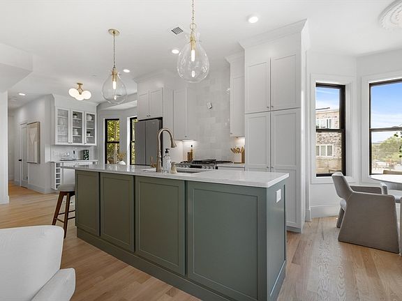 Discover unparalleled Luxury in East Boston. Brand New 2 Bed / 2 Bath 1000+ SF condo with private deck. Completely renovated to the studs. Victorian architectural features include Anderson custom bay windows, wainscoting, extended door frames & arch accents. State of the art kitchen with LG & Haier appliances, handcrafted hood and 10 foot quartz island with table feature. Custom Kemper cabinetry features a versatile breakfast/wine bar with open glass shelving. Large dual bay window spaces perfect for dining or entertaining, a host's dream. Designer lighting from Anthropologie plus a bonus office or mudroom nook with chandelier accent. Extra storage in the basement as well as rockwool soundproofing insulation between floors. Smart Home Tech with Nest Thermostat. Enjoy modern comforts with Central AC and laundry. Nestled one block from the MBTA Airport T, Greenway & close proximity to Tall Ship & waterfront restaurants MIDA & Reelhouse.