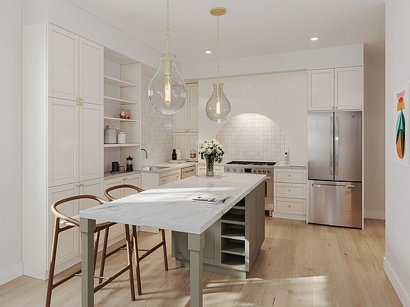 Welcome to the penthouse of this boutique condo project, featuring unobstructed views of Downtown Boston and exclusive roof rights for your dreamy roof deck. This 2 bed/2 bath spans just under 1200SF and its Victorian architectural features include Anderson custom bay windows, wainscoting, extended door frames & arch accents. State of the art kitchen with LG & Haier appliances, handcrafted hood and 12 foot quartz island with table feature. Custom Kemper cabinetry features an ample amount of pantry, storage & shelving. Large bay windows in both the living room and primary bedroom. Designer lighting from Anthropologie throughout the common spaces and bedrooms. Extra storage in the basement as well as rockwool soundproofing insulation between floors. Smart Home Tech with Nest Thermostat. Nestled one block from the MBTA Airport T, Greenway & close proximity to Tall Ship & waterfront restaurants MIDA & Reelhouse. Parking for rent ($150/mo) close by.