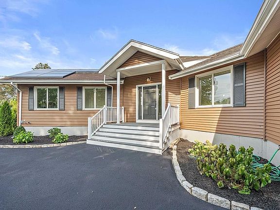 Spacious Completely Renovated Home with full IN-LAW potential. Grand Entrance leading into Open Concept Kitchen Dining and Living space with Cathedral ceilings New LED recess lighting throughout New stainless-steel Appliances. Sunlight gleams through large Anderson windows and doors that line the room showcasing the large tree lined yard, across from Cushing pond. Indoor outdoor living on your new trex decks off the dining room Custom built-in shelves around your tv. Large Primary Bedroom, secluded from the other 2 main floor bedrooms, feature Vaulted ceilings, ceiling fan, a slider door leading to a private deck, large renovated bathroom with shower and soaker tub to relax in. Gorgeous Renovated InLaw Suite or air bnb potential open-concept living/dining 3 bedrooms and Large Full bathroom Enter through the main level or Private Entrance. 2 separate washer dryer hook ups on both levels. Home features 2 car attached garage. central air. Tesla solar panels