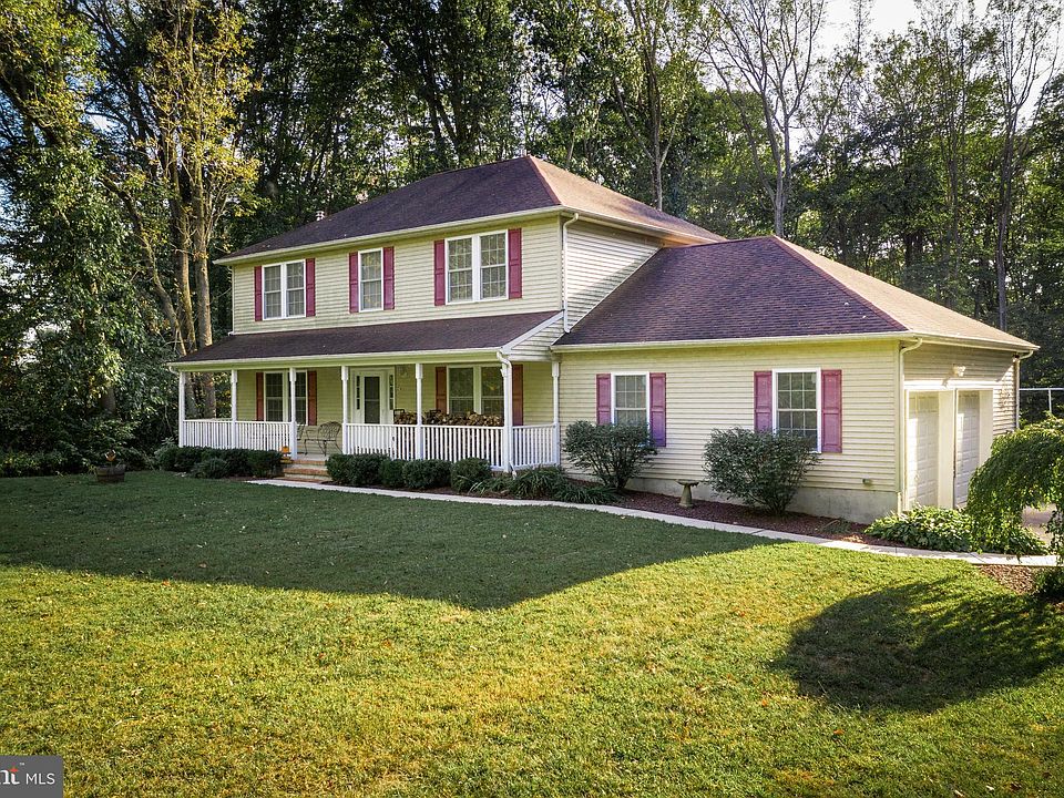 Welcome to this pristine, North Hanover home tucked into the scenic wooded lot.~ The house sits approximately 200 ft. off the road on 3.6 acres of land.~ As you arrive, you will walk up to the covered front porch that is so inviting.~ Continue inside and you will find plenty of space to relax in the living room which boasts a wood burning stove where you can curl up on those cold wintry nights.The huge eat in kitchen has all stainless-steel appliances, 42" hickory cabinets, Corian countertops a large island with granite countertop, and tile flooring. Off the kitchen, the large family room has a floor to ceiling stone wall, a fireplace, and a glass sliding door that leads to the huge 500 sq ft deck. The dining room offers a beautiful tray ceiling.~ The second floor invites you to explore the spacious master suite with a huge walk in closet, and a master bathroom which has both a single shower and a full tub/shower.~ Additional features include a hookup for a backup generator, 2 zone heating/Air conditioning system, a huge open space for the kids to play as well as trails in the woods, a custom well-water treatment system, a spacious unfinished basement, and lots more.~ Since this home was built in 2008, the septic, roof, and mechanicals are fairly new.~ This house has been lovingly maintained now it is your turn to enjoy it. Minutes from the turnpike, 295 and 195.
