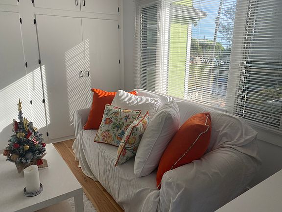 If you need it sooner than March 15th it's negotiable. Very bright studio on Cliff Drive across from Las Brisas, the Museum, and a few doors to Urth Cafe. Views of the ocean from the long wooden terrace and large living room window. I love white so I have the couch covered with a white cover and they are my pillows. The couch is black. I have white on the bed. You can make it any color you want. You can see the ocean/beach from the living room. You can also hear the waves at night. Full bath with tub and shower and vanity with mirror with 2 windows, holds a queen size bed (for sale) furnished with living room (sleeper sofa), tons of storage, full-size refrigerator, kitchen has a microwave, all-in-one toaster oven/air fryer and burner with white butcher block cabinet to hold your dishes and cookware with a large sink. Windows throughout the apartment. Higher ceilings. The terrace will hold a table and chairs, couch, umbrella and barbecue. Washer and Dryer located right below me. Light wooden floors and white walls. Rent is $2,650 including utilities except for internet and cable. The owner prefers 1 person and no pets. Annual lease to begin March 15th (if you need it sooner it can be negotiated). I live onsite and need to relocate. You are 5 minutes to Whole Foods. Street Parking. You can get the resident parking pass. Quiet neighbors. Very clean and well-maintained. Security lights. Owner pays utilities (electricity, gas, water and trash). 12 month lease, security deposit equal to one months rent. Furniture is negotiable. Owner prefers one person because it's approximately 425 sq. ft. No smoking. Tenant replaces light bulbs. If there are any other maintenance issues you can report them to the owner. Plenty of street parking and you can get a resident pass for approximately $80 annually.