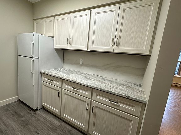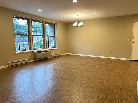 This beautifully renovated 750 sq. ft. apartment offers a convenient layout and modern amenities, ideally situated just 1 mile from downtown, shopping, dining and easy access to NJ transit. The dining room features parquet hardwood floors and large windows, flowing seamlessly into the living room. The living area boasts the same hardwood floors, recessed lighting, and expansive windows for a bright, open feel. The updated kitchen includes quartz countertops, a GE stainless steel electric stove/oven, a Broan stove hood, and a top/bottom fridge. The bedroom offers parquet floors, recessed lighting, large windows, and double closets. The renovated bathroom offers a shower/tub with a sliding glass door, a single vanity, a mirrored medicine cabinet, and tile flooring, completes this unit. Close to top schools & only 7 miles to NYC!
