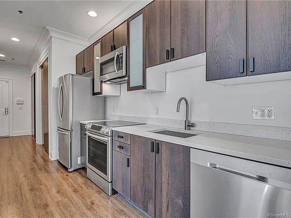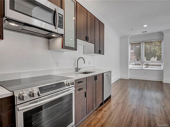 Downtown Living at its best! Luxury unit, 692 sq ft 1 bedroom with high ceilings & amazing natural light in the heart of downtown New Haven in high-end boutique residential building steps from gourmet restaurants & shops. Modern architecture, sleek kitchens with SS appliances & center island, private washer & dryer, Central air and wonderful views of the city. The complex features an elevator in the building, a fitness & business center & rooftop. Experience living, working and playing in the Elm City! Available with $1,000.00 security deposit and good credit required. Pets possible with additional fees. The building is offering the first month free if tenant moves in within 30 days Trash and parking available with an additional fee.
