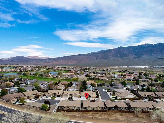 Beautifully updated! This immaculate 3 bedroom boasts gorgeous vinyl plank flooring throughout the living area, newer carpet in the bedrooms, beautiful quartz countertops in the kitchen & baths. The spacious greatroom is open to the kitchen & dining areas. Kitchen has stainless appliances + refrigerator included. Separate laundry includes the washer & dryer. Located in the gated Dayton Valley Golf Course on a quiet cul-de-sac w/unobstructed mountain views from the covered & uncovered patio areas. Stucco exterior and tile roof. Finished garage w/opener. This won't last long- call today!