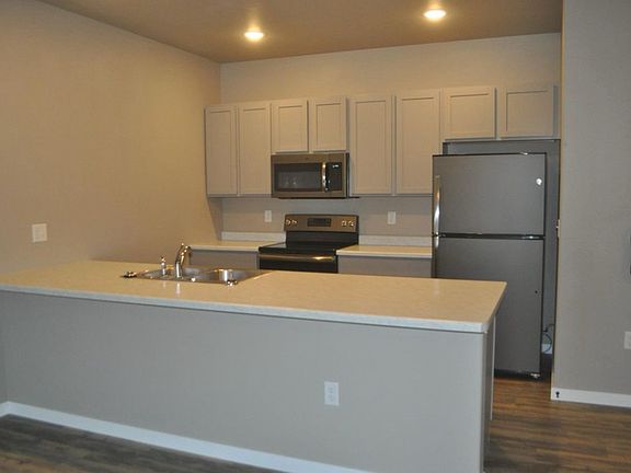 Sublease available 12/1/24 (Lease ends 07/31/25 - option to renew). Do not apply on Zillow. Large open floor plan with grey colored kitchen cabinets, island peninsula & stainless appliances. White trim and doors. Main floor laundry with w&d included. Luxury vinyl tile flooring. Gas fireplace. Huge master bedroom with a master bath and walk in closet with hangers installed. Large bedrooms. 2 car attached garage. private patio. Plenty of green space and near a park and trail system. Pets allowed. Sublease duration: 12/01/24 - 07/31/25. Option to renew. Renter pays water, heating/electric.