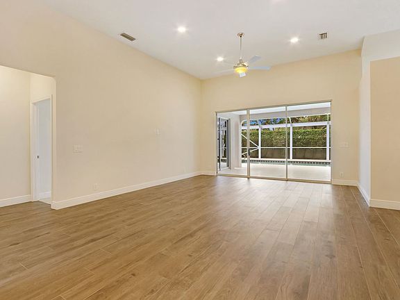 Newly renovated 3 BR / 3 BA Single Family Home in the highly coveted Eagleton Estates section of PGA National! Not a detail missed in this modern, bright & airy pool home. Design elements include 8 x 48 plank tile in main living areas, formal living & family room w/ volume ceilings, and new CAT6 & Coax wiring throughout the house to a central smart panel. Chef's kitchen equipped with new GE Profile appliances, Adornus cabinetry and oversized island. Master BR Suite w/ new carpet, luxe bath & soaking tub. Two additional guest bedrooms feature fully renovated en-suite bathrooms. Outdoor area features Large covered lanai, leading to the screened-in Pool. Offering both spacious interior living + serene outdoor comfort, this home is perfect for entertaining.