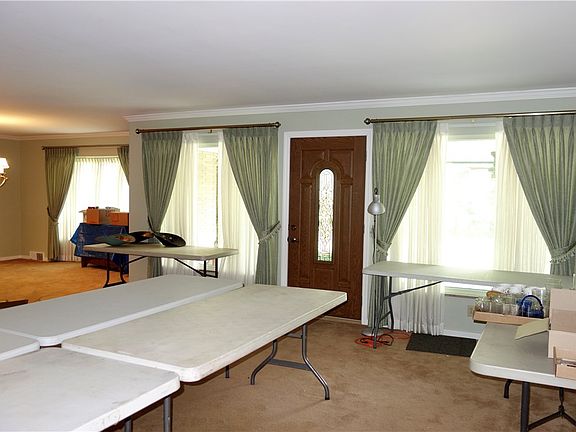 Beautifully sited sprawling brick ranch of superb construction with great curb appeal. In the midst of an estate auction, presenting this loved family home is not at its' best! The large front porch leads to a stunning living room with natural light flooding this oversized room. Family Room shares access from front porch w/corner stone fireplace with wall of built-ins that will be the gathering spot .Open floor plan transcends to the Dining Room w/large bay window. Kitchen pocket door-loads of cabinets-built-in wall oven/microwave-cooktop & Jenn-air oven, lots of counter space (11x9) breakfast room flanked by corner windows.Step out to the covered patio, private yard w/shed. The wing of the home offers private/quiet bedrooms. Hardwood flooring, walk-in closet & full bath comprises the owner's suite. The lower level consists of the 3rd bedroom with full bath, walk-in closet. Let your imagination loose here.Owner was a train collector w/amazing train set-up, workshop, & oversized garage