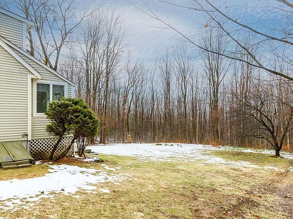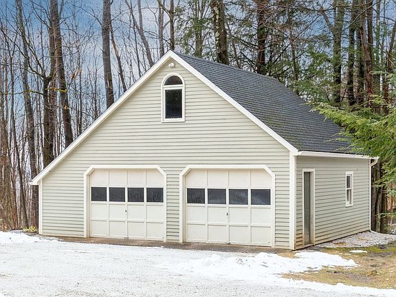 This charming Hinesburg cape sits on a private 3-acre lot. Pride of ownership radiates with quality finishes throughout. The spacious eat-in kitchen is the heart of the home, equipped with skylights, generously proportioned island, and a temperature controlled wine room, all complemented by a walk-in pantry with extra counter space and cabinetry. The main level features a bedroom suite with a full bath and den. The bright living area opens to a back deck through French doors. Upstairs, the large primary suite includes a full bath and oversized walk-in closet with built-ins. A third bedroom, currently an office, can easily be converted back to a bedroom. Lots of storage options with a full basement and detached two-car garage with attic. The backyard offers plenty of open space while the mature forest creates a private cocoon. Just a few minutes to Hinesburg Village and 25 minutes from downtown Burlington and the airport, the perfect combination of country living and convenience.
