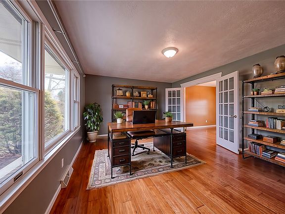 Custom-built Brick multi-level home on 2+acres. Minutes from I-79.Beautiful rustic hand scraped oak hardwood flooring adorns the main level. French doors divide formal living and dining rooms. New quartz countertops with ample cabinets in kitchen, spacious family room with new luxury vinyl slate flooring. Fireplace with built-in wood burner for cozy winter nights. Updated powder room and large laundry/mudroom lead to a large 2-car attached garage. Family room opens to a large composite deck with aluminum railing that over looks beautiful wooded/private views. 3 bedrooms and 2 full baths complete the upper level with the primary bedroom having an en-suite bathroom. Basement offers storage area with a separate room for possible crafting/hobby or office on one side and a third garage on the other side. New heat pump 2018, 80 gal water heater, well and septic but there is a public water at the street. Tap in is paid for. Make this wonderful home the start of your next chapter!