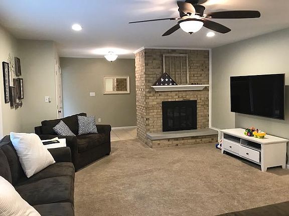 Spacious updated single level home in great move-in condition. Home has been updated-all new light fixtures-ceiling fans & recessed lighting; fresh paint and new wood blinds throughout. Also updated w/new carpet & tile (3 yrs) + roof & hvac (8 yrs). Smooth ceilings throughout. Living Room with brick fireplace and oversized bay window. Spacious kitchen includes tile floors, stainless steel appliances, large pantry and breakfast nook + separate dining room. Huge laundry room (8x20) with built-ins & exterior door w/8x8 paver patio. Huge Carolina Room does not have hvac & is not included in sqft, opens to new 14x17 patio w/pavers & overlooks spacious backyard. Master Suite has new tiled walk-in shower. Excellent family home with charm and style! Close proximity to lakes, park & fitness center.
