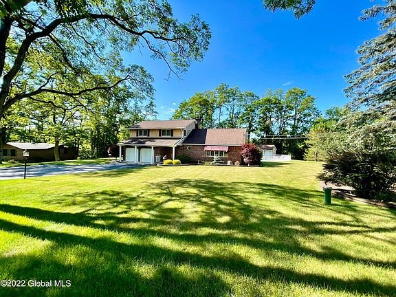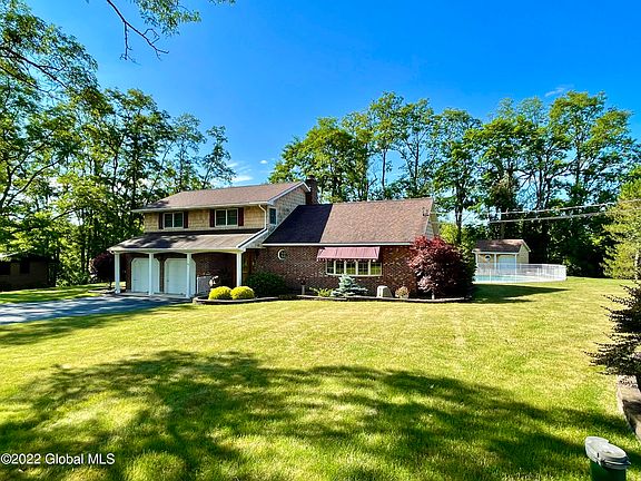 Beautiful custom built home on 1.4 acres. This home features a large open eat in kitchen with updated countertops & SS appliances. Just off the kitchen a formal dining & living room with HW floors & large windows that overlook the pool & grounds. A cozy 1st floor den for everyday use with brick accents & wood burning fireplace. Laundry room and bright sunroom w/skylights complete the 1st floor. The 2nd floor features a master bedroom with full bath & private dressing room. 2 additional bedrooms & 1 Full bath. The home itself features lots of indoor/outdoor storage including 7 closets on the 2nd floor. 2 car garage and full dry basement. Newer roof, well, furnace & central air. The grounds feature mature landscaping, gunite in-ground pool, patio area/storage, deck and outdoor shed.