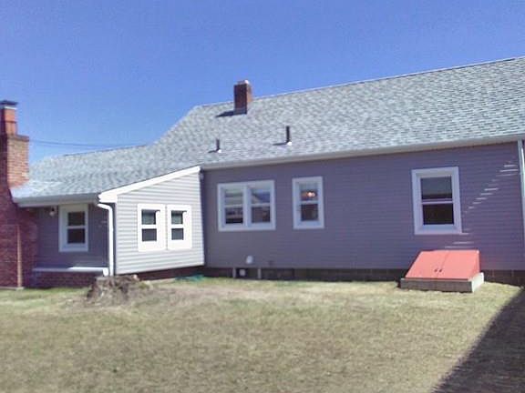 LARGE 3 bedroom cape style home with a 1 car attached garage that has many updates!! NEWER ROOF, VINYL REPLACEMENT WINDOWS AND VINYL SIDING all done approximately 5 years ago!! This home has a large eat in kitchen with brown oak cabinets and a dining area as well as a large living room with oak hardwood floors. Home also has 2 good sized bedrooms with oak hardwood floors on 1st floor. There is plenty of closet space throughout the house. There is a heated breezeway with a large fire placed family room attached to it that has dark oak hardwood flooring.Great for entertaining!! Large master bedroom on the 2nd floor that has berber carpeting and built in drawers. There is a partially finished walk out basement that could be a playroom as well as a full bath with laundry that has been updated!! This home also has a LARGE NEWER FENCED IN BACK YARD. All appliances are included in sale