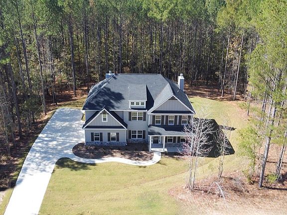 Motivated Sellers!!! Don't miss this opportunity! Impressive 5BR/4.5BA on 2.1 Acres — Like New & Meticulously Maintained. Discover luxury living in this less-than-three-year-old, impeccably maintained 5-bedroom, 4.5-bath home offering 3,669 SF of thoughtfully designed space on a flat 2.1-acre lot with a serene wooded backyard. Located on a quiet street leading to a cul-de-sac and surrounded by estate-style lots, this property provides privacy, beauty, and comfort. Interior Highlights: High-end flooring throughout including premium LVP, plush carpet, and elegant tile. Formal dining room featuring a beautiful coffered ceiling—perfect for gatherings. Main-level guest suite w/private full bath, ideal for visitors or multigenerational living. Open-concept main living area with a spacious family room and a never-used, wood-burning fireplace. Gourmet kitchen that checks every box: Large island with bar seating, Granite countertops, 5-burner gas cooktop, Wall oven & microwave, Walk-in pantry, Light-filled breakfast area with views of the backyard. Mudroom conveniently located off the 3-car garage, plus a separate laundry room. Half bath on the main level for guests. Owner's Retreat: Upstairs master suite is oversized and luxurious. Spa-like master bath includes: Double wrap-around vanity, Large soaking tub, Beautiful tiled shower, Spacious walk-in closet. Upper-Level Living: Dedicated movie theater room (20.8' x 18.5'), wired for sound—perfect for entertainment. Two additional bedrooms connected by a Jack-and-Jill ensuite bath. One more bedroom with its own private ensuite bath. Outdoor Living: Covered game-day porch complete w/: Never-used, wood-burning fireplace; Built-in speakers; TV wall mount; A/V hookups. Outdoor space ready for year-round enjoyment and entertaining. Property offers the perfect bland of modern luxury, meticulous care and peaceful surroundings.